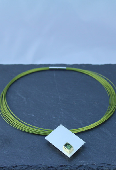 Gesellenstück Anhänger 925/- Silber mit 750/- Gelbgold mit grünem Turmalin