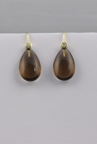 Ohrhänger 585/- Gelbgold mit 2x Brillant je 0,02 tw/vsi je 1x Rauchquarz