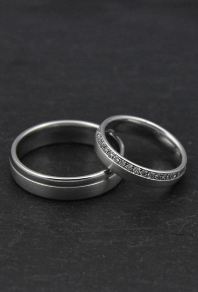 Trauringe aus 585/- Weißgold 48 Brillianten a 0,01 ct tw/si